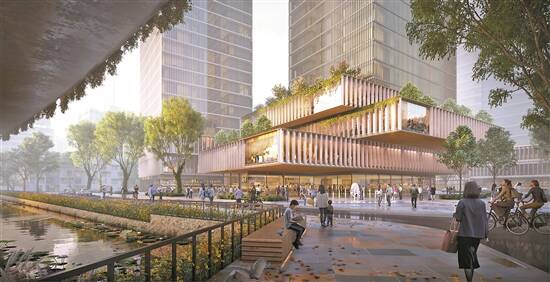 本次详细规划方案优化后,项目范围内总建筑面积将减少3.6万平方米,地块容积率由11.1降至8.8,建筑限高由198米降至188米,绿地率由15%提升至17%。方案公共服务设施总规模由0.3万平方米调整至0.6万平方米,超额配置9班幼儿园,与办公裙楼合建。该地块配备幼儿园、居委会、社区议事厅、星光老年之家、党群服务中心、警务室等公共服务设施,还增设超市、便利店等各种商业服务业设施。