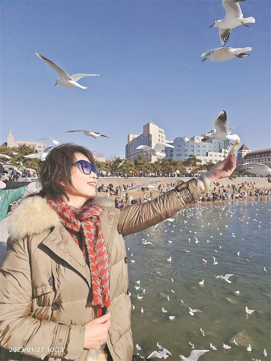 2023年初,来自四面八方的游客汇聚山东省青岛市的栈桥景区,与来自西伯利亚的红嘴鸥亲密互动,喂食、拍照……构成了欢乐、和谐的海洋。