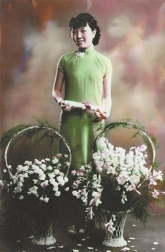 杨苡从中西女校毕业时到照相馆留影。照片由杨苡自己着色上彩