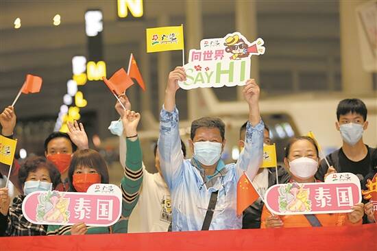 广东泰国出境游首团在广州白云机场出发现场