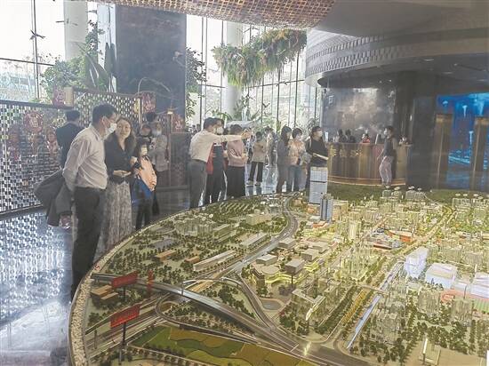 位于黄埔区夏园地铁站附近的万科黄埔新城,人气则更好一些。周六上午,该楼盘宽敞的销售中心内,十几张洽谈桌旁几乎坐满了人。记者在等前往样板房的电瓶车时发现,虽然五分钟左右会新来一趟车,但是还要轮候两趟才能上车。