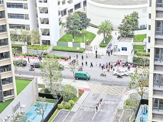 为求证他的说法,记者实地走访了争议道路以及小区周边道路,从宽度来看,该“非定位路”通行条件优于小区东西两侧的市政道路,加之正对湾区实验学校校门,对外开放后有可能会成为接送学生车辆的一个主要选择。