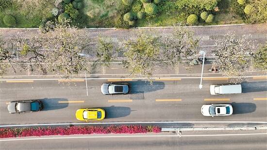 广州人民北路紫荆花盛开 羊城晚报记者 陈秋明 摄