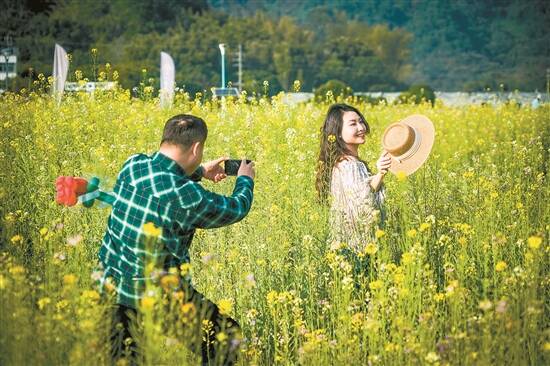 广州黄埔区迳下村油菜花田成为网红打卡点 羊城晚报记者 贺全胜 摄