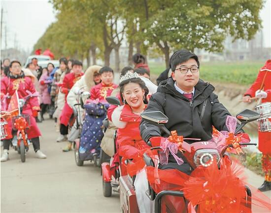 近日,一对95后青年结婚,他们用13辆电动车组成的车队在乡村走了5.9公里娶亲路,完成了他们此生最浪漫的事。虽然没有豪华车队,但两位新人的脸上挂满了幸福的笑容!