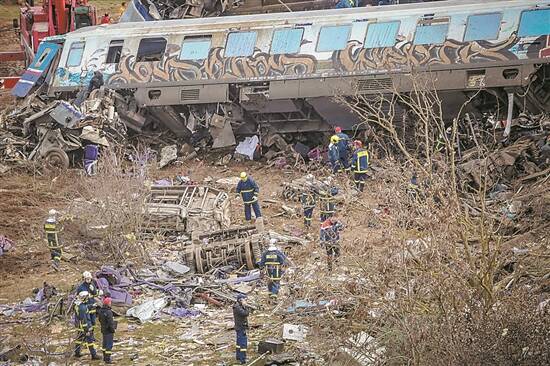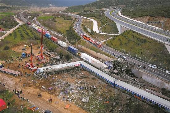 2月28日深夜,一列高速行驶的客运列车与一列货运列车在希腊第四大城市拉里萨市附近迎头相撞,导致两车多节车厢脱轨甚至完全损毁,部分车厢起火,不少乘客被困。