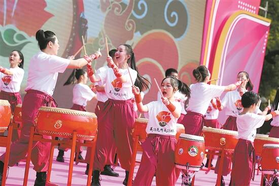 3月1日,“英雄花开英雄城”活动上,小朋友们带来了精彩的击鼓表演 羊城晚报记者 周巍 摄