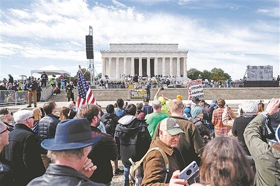 2月19日,在美国首都华盛顿,人们在林肯纪念堂前参加集会 新华社发