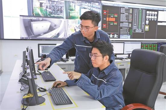 500千伏科北变电站内运行人员正在对设备状态进行监控 陈尚恒 摄