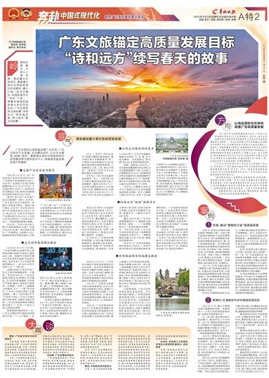 岭南处处是春天,文旅人人做先锋。推动重大文旅项目、粤港澳大湾区世界级旅游目的地建设,精心打造一批文艺精品,实施岭南文化“双创”工程……乘着全省高质量发展大会召开的东风,广东文旅系统正谋划着“诗和远方”高质量发展,努力续写“春天的故事”。