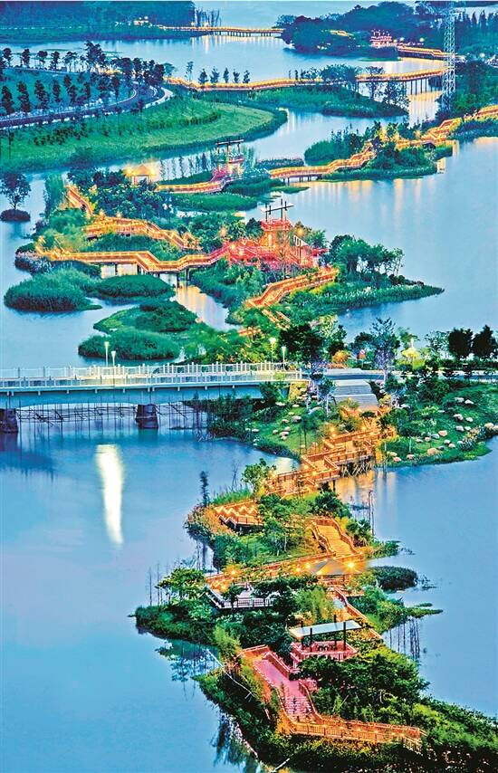 璀璨曲桥贯穿湖中湖 姚日文 摄