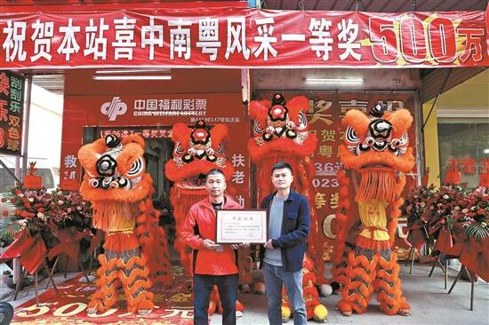 当天上午,潮州福彩中心工作人员来到位于潮州市枫溪区云步村的44190147号投注站,为该站中出中国福利彩票南粤风采第2023030期一等奖颁发中奖证书,并奖励该站点5000元奖金。