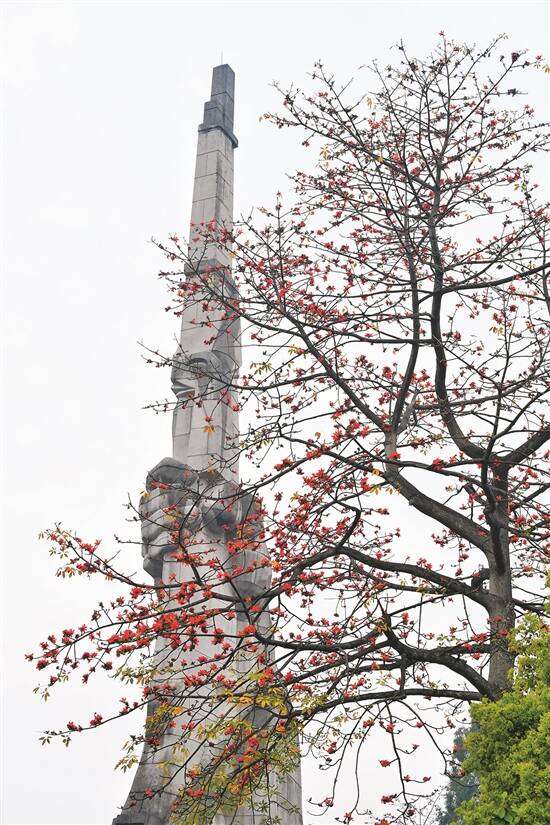 广州烈士陵园内,广州起义纪念碑前的木棉盛开 陈秋明 摄