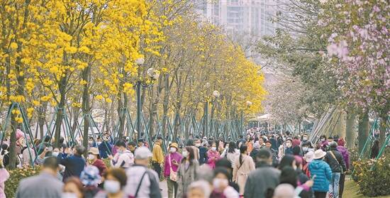 春天,广州繁花似锦,百花争奇斗艳——吐“焰”的红棉、粉白淡雅的紫荆、艳丽耀眼的黄花风铃木让市民和游客兴奋陶醉,花城春花又一次火爆出圈。