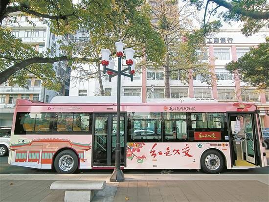 在广州农讲所纪念馆活动现场,以“英雄花”、红色革命旧址等为主元素设计打造的“英雄花开英雄城”红色公交引人注目,主题红色公交与英雄城广州事迹、广府文化等有效融合,动态联结全市红色革命教育基地、爱国主义教育基地等,为市民、游客探寻广州红色文化印记提供了便利,成为羊城流动红色学堂和党建教育基地。