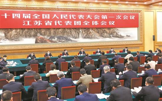 3月5日,中共中央总书记、国家主席、中央军委主席习近平参加他所在的十四届全国人大一次会议江苏代表团审议 新华社发