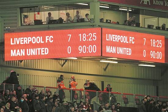 北京时间3月6日凌晨,英超第26轮的“双红会”在安菲尔德球场打响,现场记分牌最终显示7比0的比分显得格外刺眼,利物浦在主场迎来一场大捷,同时送给曼联两大最惨纪录:“双红会”最大比分失利,追平曼联队史最大比分失利。