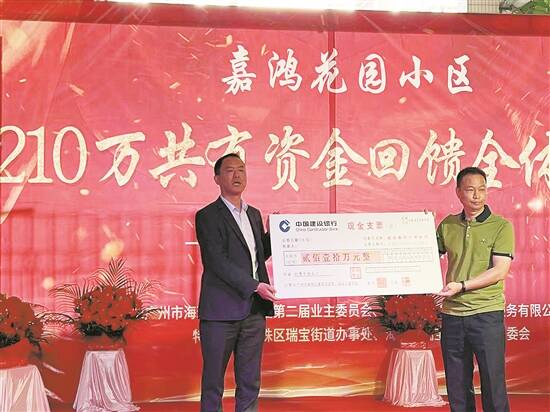 3月6日,位于广州市海珠区的嘉鸿花园业主喜领210万元“大礼包”。这笔由小区共有地段产生的收入,将根据《广州市物业管理条例》及《广州市业主共有资金管理办法》相关办法,用于物业管理费抵扣。预计不同产权面积的小区业主也可在未来8到10个月内免交相关费用。