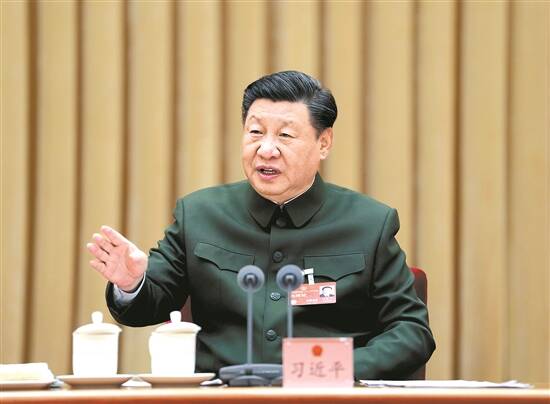 3月8日下午,中共中央总书记、国家主席、中央军委主席习近平出席十四届全国人大一次会议解放军和武警部队代表团全体会议并发表重要讲话 新华社发