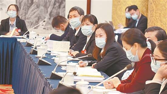 3月8日上午,十四届全国人大一次会议广东代表团举行小组会议,审议全国人大常委会工作报告(以下简称“报告”)。现场,代表们认真审议、热烈讨论,围绕立法工作、监督工作、代表工作等谈感受、提建议。