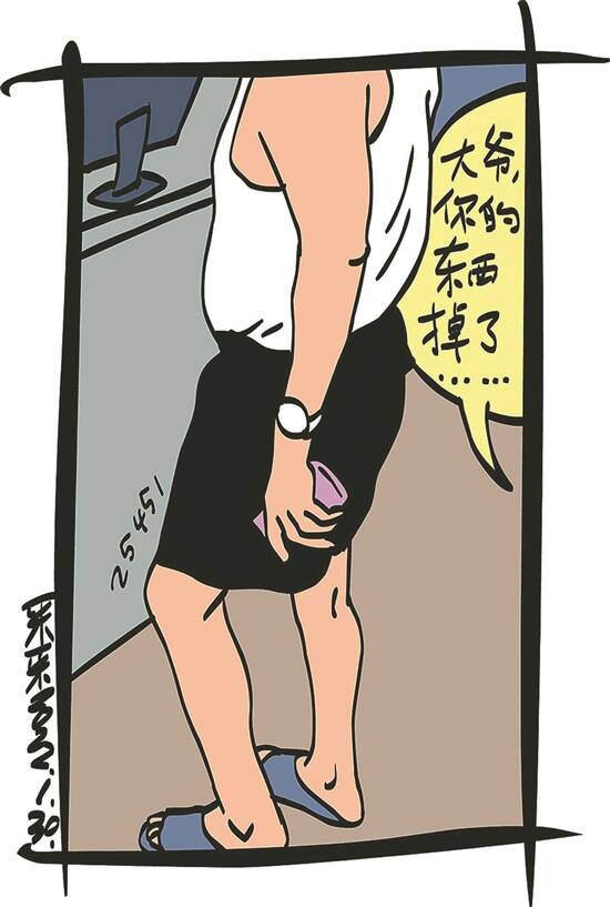 “大爷,你的东西掉了。”小李捡起纸条,发现是张彩票,随即递还给大爷。大爷忙用一口可爱的广普向小李道谢。