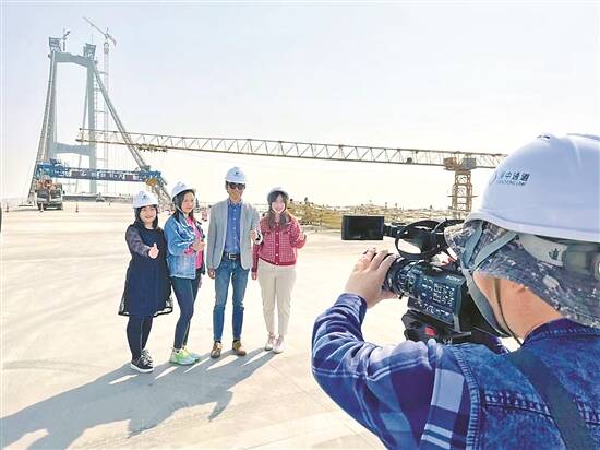 梁汉杰(右二)在深中通道参观 图/受访者提供