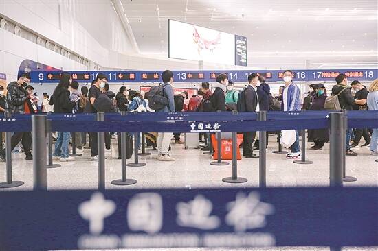 截至3月8日24时,白云出入境边防检查站已累计检查出入境人员超53万人次,日均近9000人次,同比增长超4倍,出入境航班超6000架次,出入境客运航班同比增长超320%。