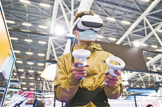 广州文交会展厅里的VR游戏体验现场 羊城晚报记者 贺全胜 实习生 林健 摄