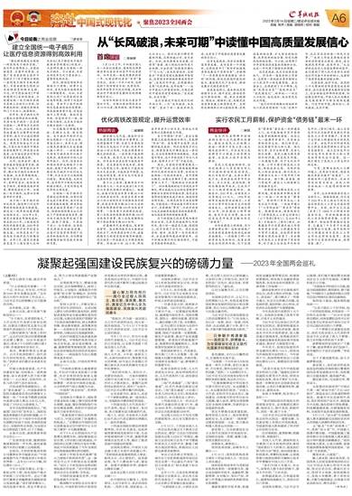习近平总书记在人代会闭幕会上的重要讲话中强调“加快推进中国式现代化建设”,政府工作报告提出“扎实推进中国式现代化”,修改后的立法法明确“保障以中国式现代化全面推进中华民族伟大复兴”……今年全国两会上,中国式现代化是重要聚焦点。