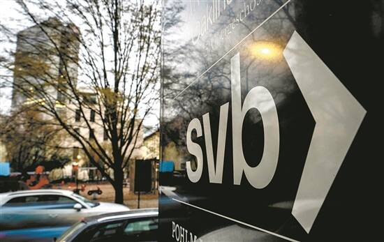 硅谷爆雷波及国际 美国硅谷银行遭挤兑的影响一夜之间波及国际。英国和欧盟的贷款机构眼看着近300亿英镑(约合360亿美元)的资产化为乌有。图为3月13日德国法兰克福硅谷银行办公楼内的一家分行的标志 图/视觉中国