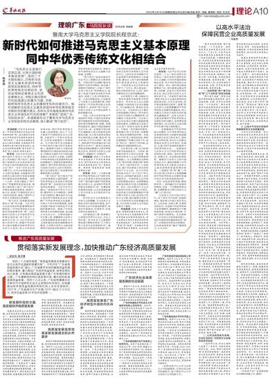 “马克思主义是我们立党立国、兴党兴国的根本指导思想”,党的二十大报告指出,只有把马克思主义基本原理同中国具体实际相结合、同中华优秀传统文化相结合,坚持运用辩证唯物主义和历史唯物主义,才能正确回答时代和实践提出的重大问题,才能始终保持马克思主义的蓬勃生机和旺盛活力。如何理解把马克思主义基本原理同中华优秀传统文化相结合的重大意义,怎样从文化角度拓展对马克思主义中国化时代化的理解?本期的“理响广东·马院院长谈”,羊城晚报专访了暨南大学马克思主义学院院长程京武教授,深入解读“两个结合”。