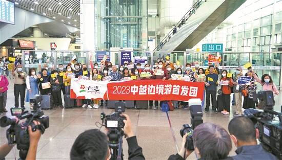 羊城晚报讯 记者刘星彤报道:根据文旅部此前发布的通知,3月15日起,试点恢复全国旅行社及在线旅游企业经营中国公民赴有关国家(第二批)出境团队旅游和“机票+酒店”业务,其中包括邻国越南。15日一早,由岭南商旅集团旗下旅行社广之旅组织的近百名游客通过铁路前往越南。这也成为中国试点恢复出境团队旅游后首批通过陆路口岸赴越的中国旅行团。