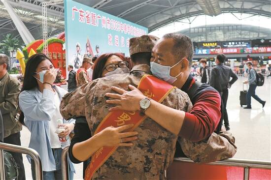 新兵与家人相拥告别 羊城晚报记者 郭思琦 摄