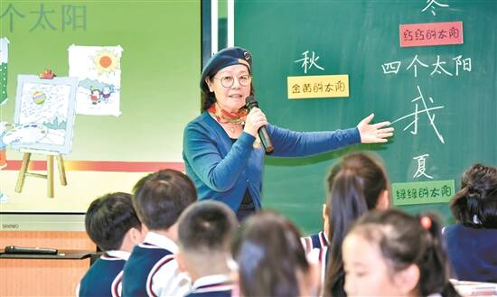 “语文是什么?”夏辇生让学生和在场的老师都深刻思考这个问题。在她看来,语文是培养孩子思维方式的一门学科,语文课文的学习不用“背”要“玩”。“这对老师提出了更高的要求,需要老师在课堂上不断启发学生,真正走进孩子的内心。”夏辇生表示,语文的学习离不开阅读,每一次阅读都是一次播种,语文老师要引导孩子们品读儿童文学,给孩子们播撒梦想的种子。