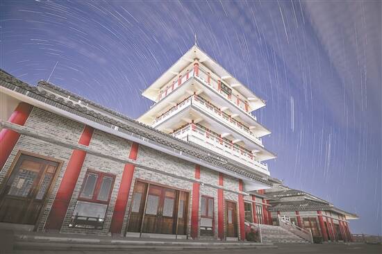 雨顺阁与星轨同框 摄于广东电白潘茂名纪念公园