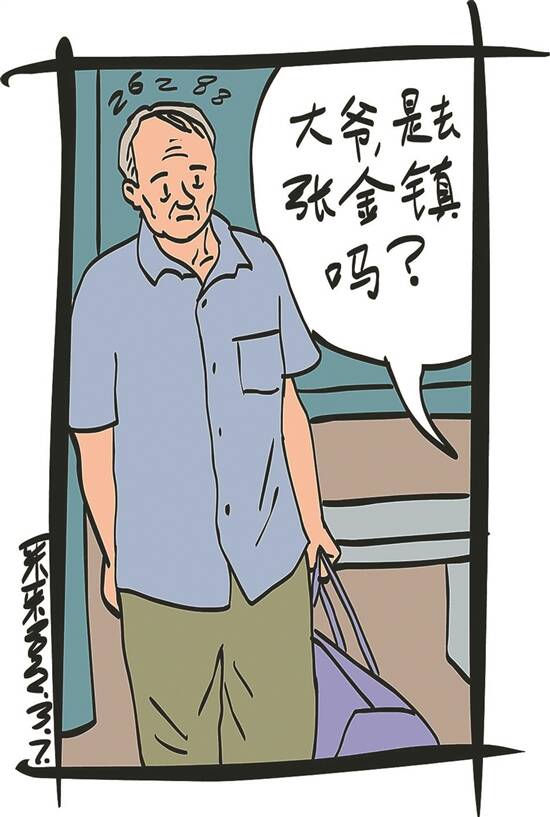 “吱”地一声,谢艺把车停在了公交站边,对一个提蛇皮袋的老人大声说:“大爷,是去张金镇吧?我捎你一程。”老人很吃惊,问一句:“多少钱?”