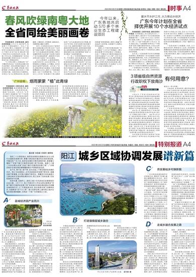 抢抓机遇,迎难而上,是阳江缩小与先进地区发展差距的必由之路。3月21日,阳江市委农村工作会议暨全面推进“百县千镇万村高质量发展工程”促进城乡区域协调发展动员部署会高规格召开,以“开局就是决战、起步就是冲刺”的精神状态,全面推进“百千万工程”,奋力在新征程上谱写阳江城乡区域协调发展新篇章,为再造一个新广东贡献阳江力量。