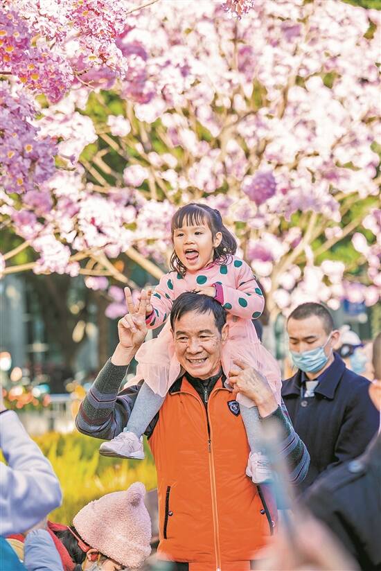 在佛山南海,数百亩茶花肆意绽放;在珠海斗门,大片油菜花田流光烁金;在韶关翁源,各色梅花迎春盛开;在河源紫金,黄花风铃木叠翠成海;在云浮云安,几万株樱花在蓝天下起舞……有了花,广东的一个个村镇都添了生机。