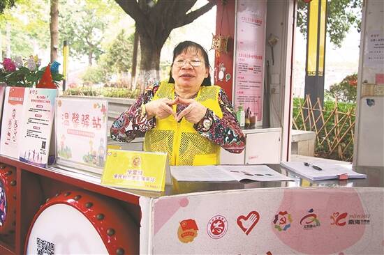 每天上午,现年70岁的李想葵就会来到大沥镇大沥公园志愿V站,换上志愿者标志性的“黄马甲”,热情为过往市民提供问路、倒水等志愿服务。