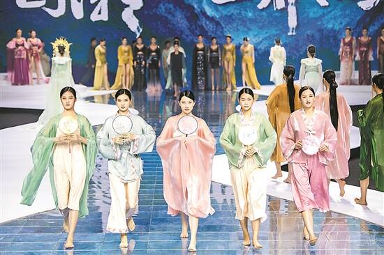商业展览之下,是产品文化价值的提高与产业价值链条的延伸。今年秀场面积比去年扩大1/3,规格全面升级。设计团队把汕头的海洋文化融入场馆设计中,打造“三江入海”的绚丽场景,身穿时尚“潮服”的模特在澎湃浪涛中来回穿行,将270度的感官视觉体验提升至360度沉浸式感官体验。