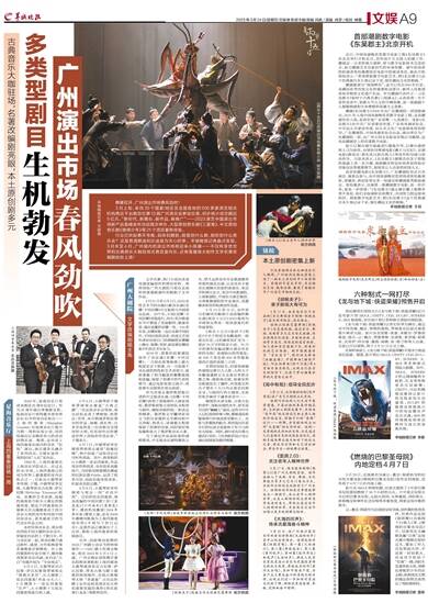 行业已吹起春天号角,具体到眼前,能看到什么剧,能听到什么音乐会?这是普通剧迷和乐迷最为关心的事。羊城晚报记者盘点发现,3月末至4月,广州城内的演出市场将迎来小高潮——不仅有享誉世界的古典音乐大咖驻场式普及室内乐,还有重量级大制作文学名著改编剧纷纷上演!