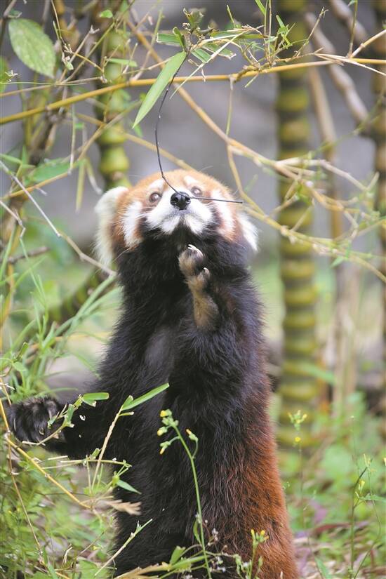 除了大熊猫,还有狮子阿杭、小熊猫、长臂猿等珍稀动物也引来了众多的游客。身穿桔红色马甲的志愿者手持告示牌,维持着园区秩序,并提供相关的咨询。