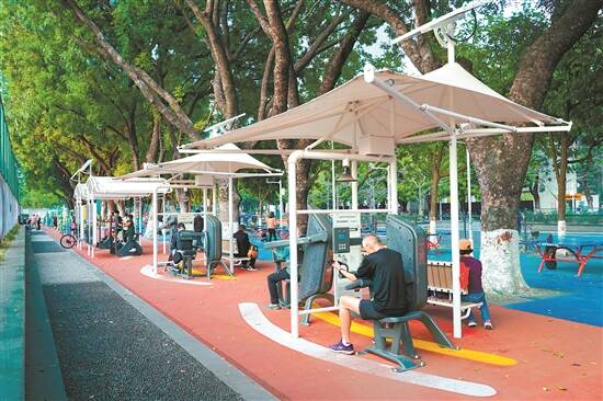 升级改造后的健身路径占地1000平方米,是集运动、竞赛为一体的趣味性、互动性健身场地,其中所有的智能器材,不仅可以运动健身,还能为群众提供创新的趣味竞赛模式,可以现场组团竞赛、线上跨时空竞赛等,打破“场馆思维”,以赛代练,通过随时随地、群众自主自发的趣味赛事,提高体育健身人数。