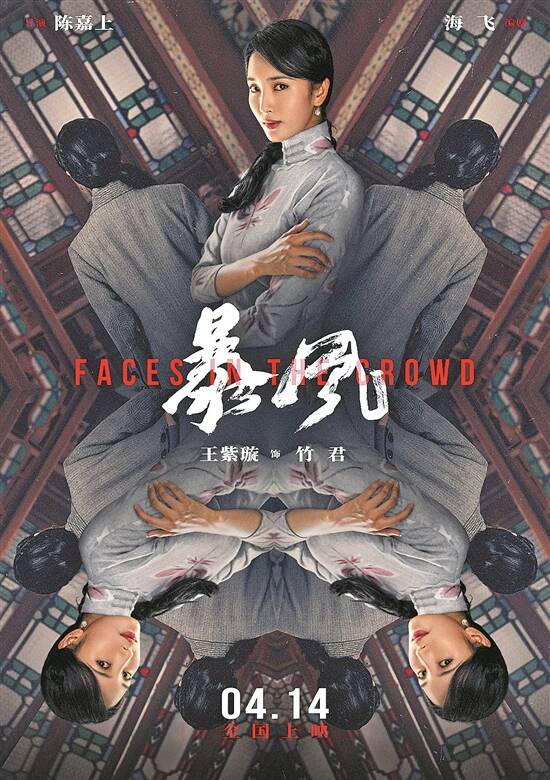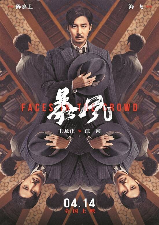 王龙正扮演的江河,手提一顶黑色礼帽。外表看似普通商人的他,似乎随时准备戴上帽子,变身为另一个人。王紫璇扮演的竹君和尹正扮演的十二少,一个双手紧紧抱胸,一个正将右手插入西服内袋,两人的姿态似呈守势,透出时刻准备应变的机敏与警觉。