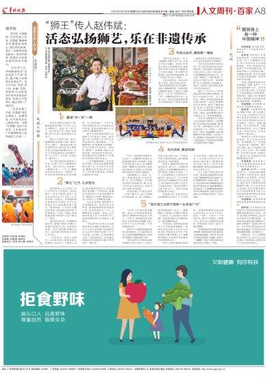 “走进名家工作室·非遗篇”将在此基础上,拓展领域,在内容和形式上提质升级。本期“非遗篇”走进5岁学艺、9岁登台的广东醒狮传承人赵伟斌的工作室——