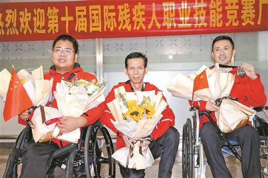 北京时间3月26日凌晨3时,第十届国际残疾人职业技能竞赛在法国梅斯落下帷幕,中国代表团勇夺6金、7银、7铜,位列奖牌榜第四位。其中,广东省派出的3名选手陈栋、全伟雄、黄开旋一路过关斩将,斩获3枚银牌,创下广东历史获奖人数和奖牌规模最好成绩。3月27日晚,3位广东选手乘飞机回国抵达白云机场,记者现场采访,了解其参赛故事。
