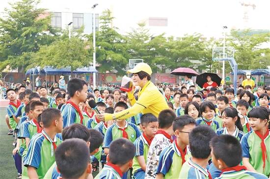 进校园宣传禁毒知识的王爱华与学生互动 受访者供图