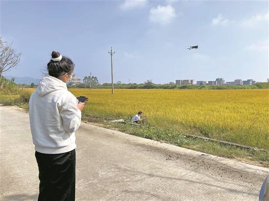 在用脚步丈量乡村之余,郑妙鸾也在不断学习新技能。在鳌江镇,工作队致力于改进低效的种植方式,通过引进水果玉米、推动优质水稻基地建设促进产业振兴。于是,她跟着村民学播种、插秧,同时自学无人机拍摄,记录并展现农作物长势、特色。