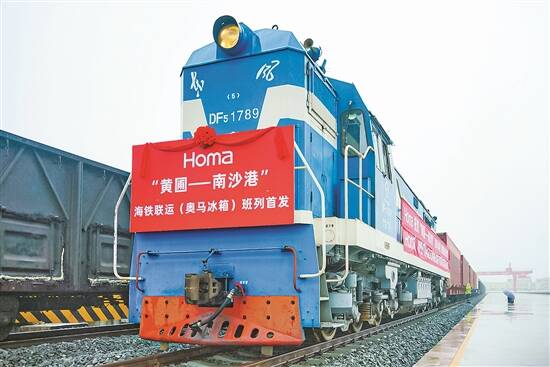 羊城晚报讯 记者李志文,通讯员蔡继波、明绮清摄影报道:3月29日11时,伴随着嘹亮的汽笛声,一列满载冰箱的集装箱班列从中山黄圃站缓缓驶出,一路奔向广州港南沙港区,班列于1个小时后抵达南沙港南站,然后通过码头运转装船出口欧美国家,为当地民众提供优质平价的家用电器。