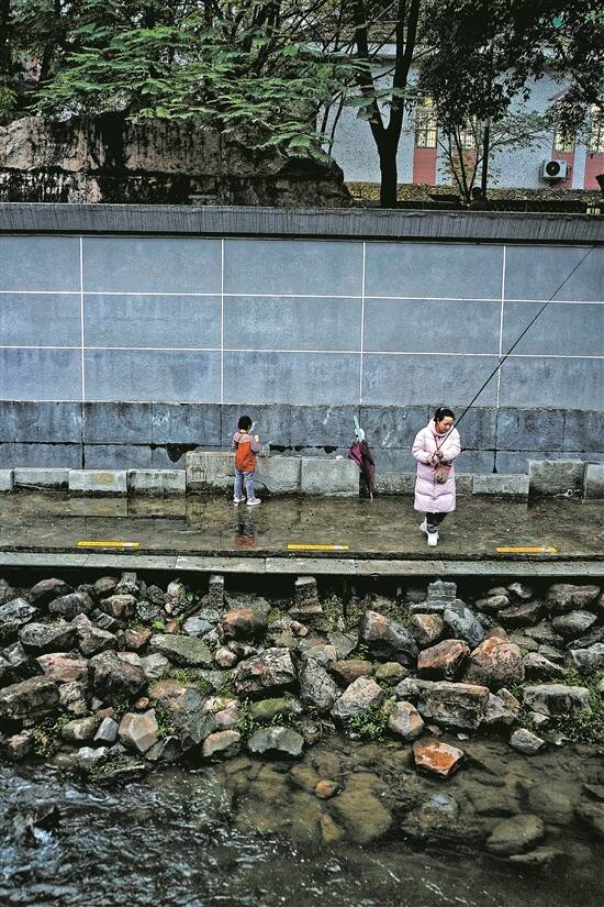 猎德涌经过改造,水清了,也有画意。这是天润路段,一位女士带着孩子黄昏垂钓
